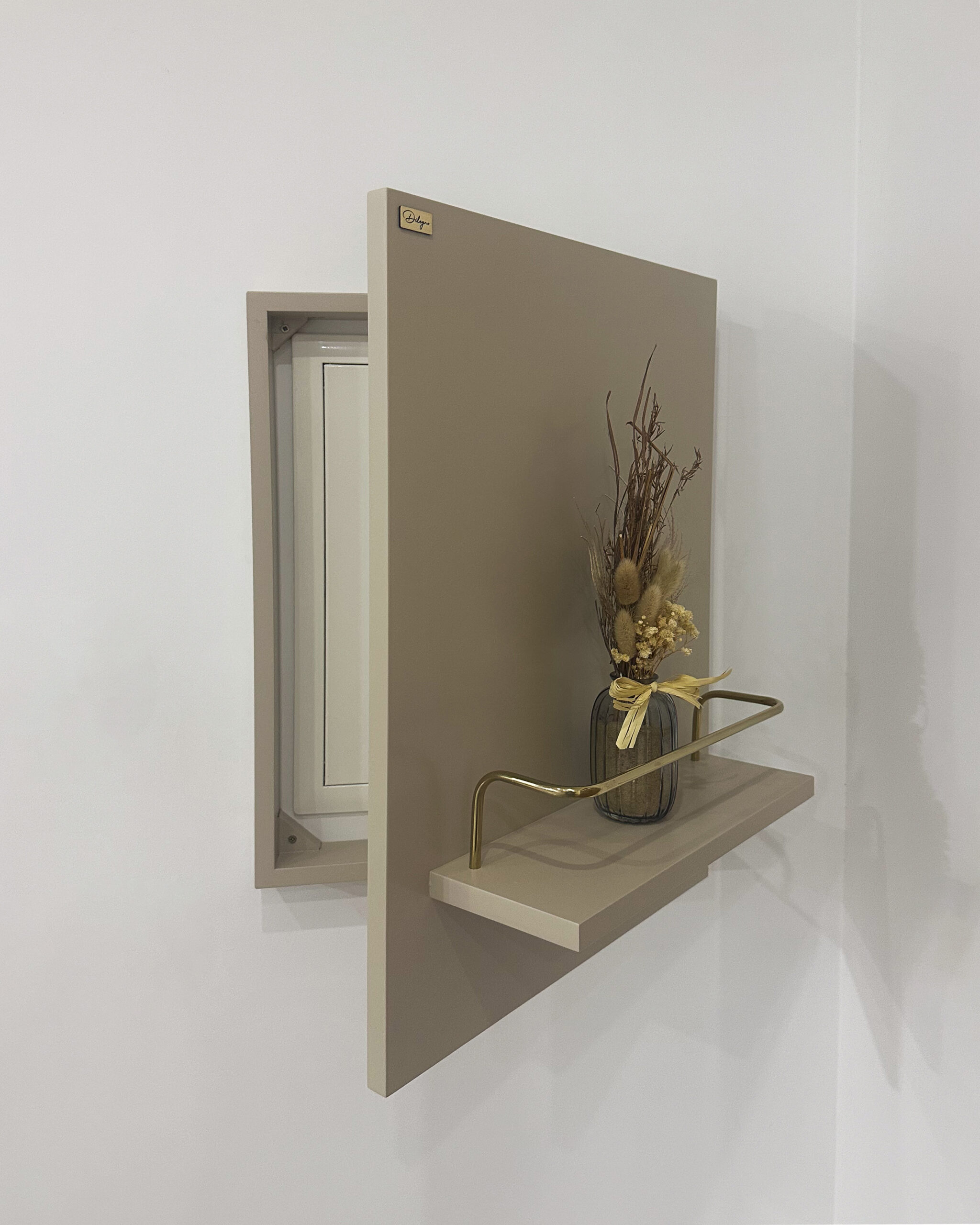 Sublimez votre intérieur avec ce cache-coffret bois en laqué acrylique mat Taupe, conçu pour dissimuler avec élégance votre tableau électrique. Ce cache-coffret, à la fois fonctionnel et décoratif, intègre une étagère avec garde-corps inox, idéale pour exposer de petits objets ou accessoires tout en optimisant l’espace.